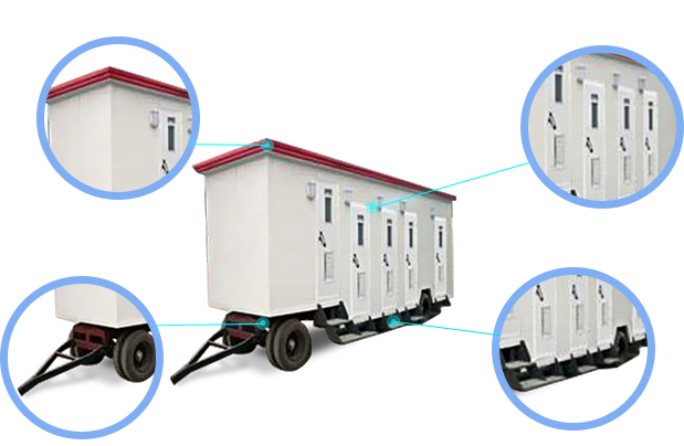 | 主框架 | 選用國標鋼材,根據廁所的大小,選用50-100mm的方管;方管經(jīng)過(guò)標準防銹處理,使用壽命在20年以上;整體架構,堅實(shí)耐用 |